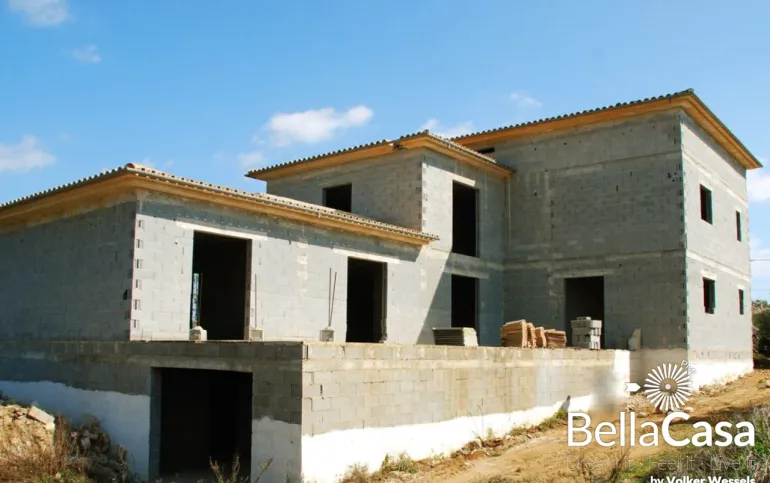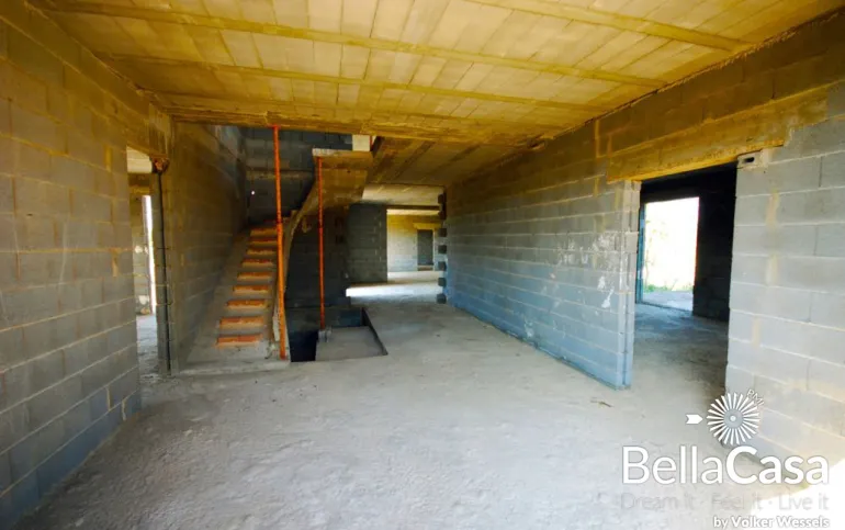 This spacious 672 sqm carcass villa wins by its exclusive location above the salt seas and just 1.5 km from the natural beach of Es Trenc.