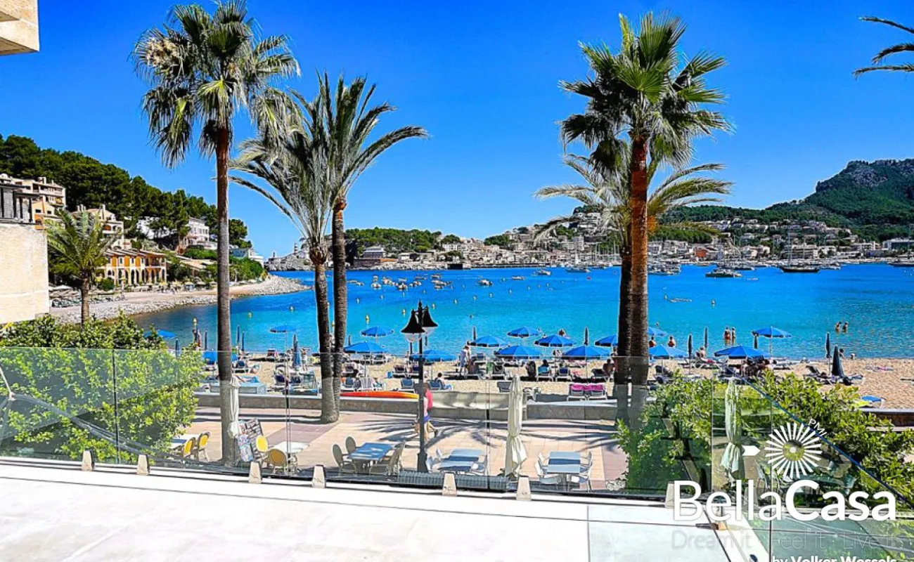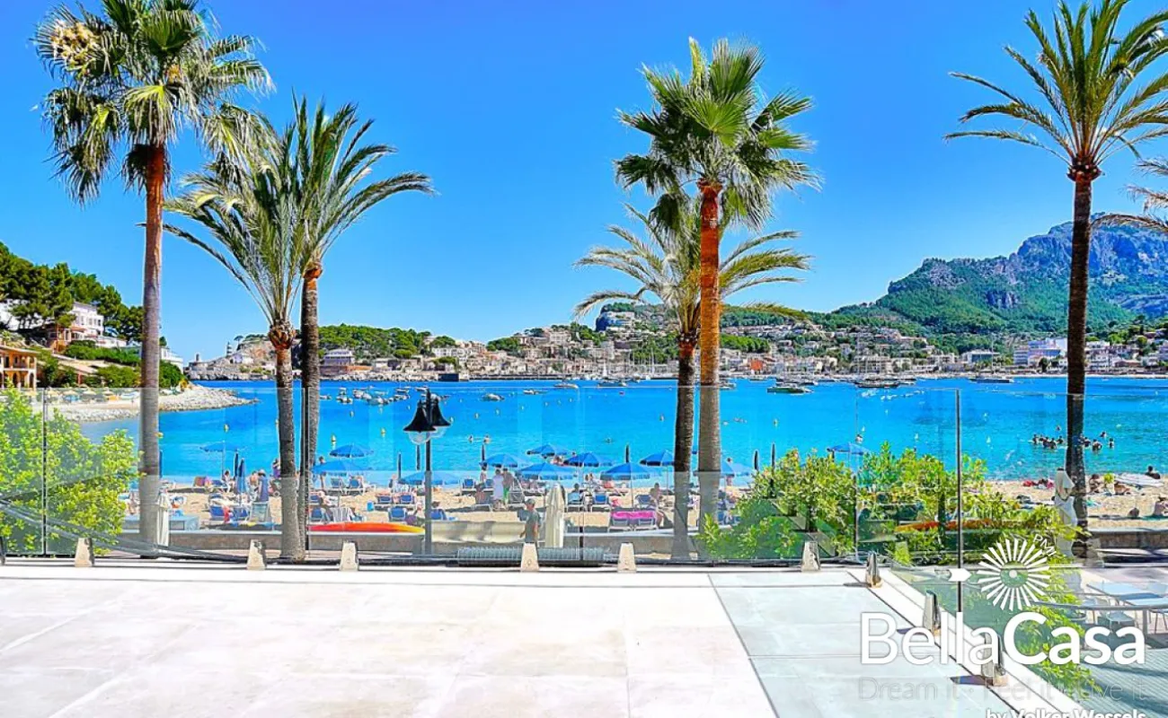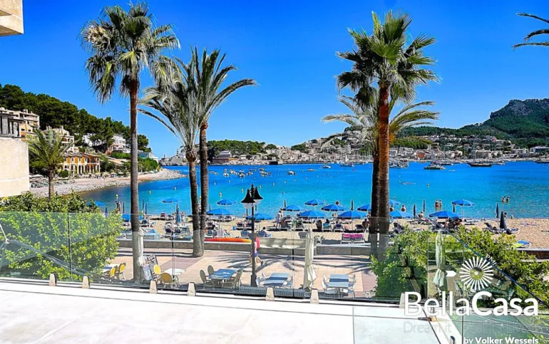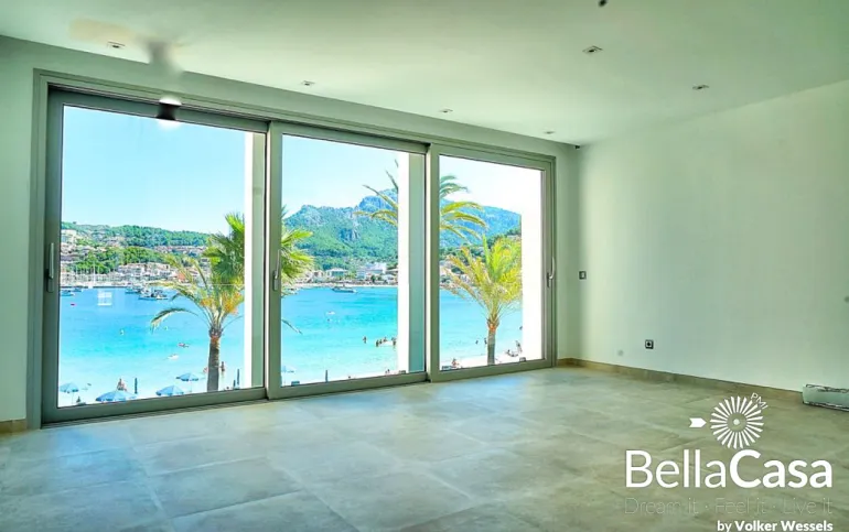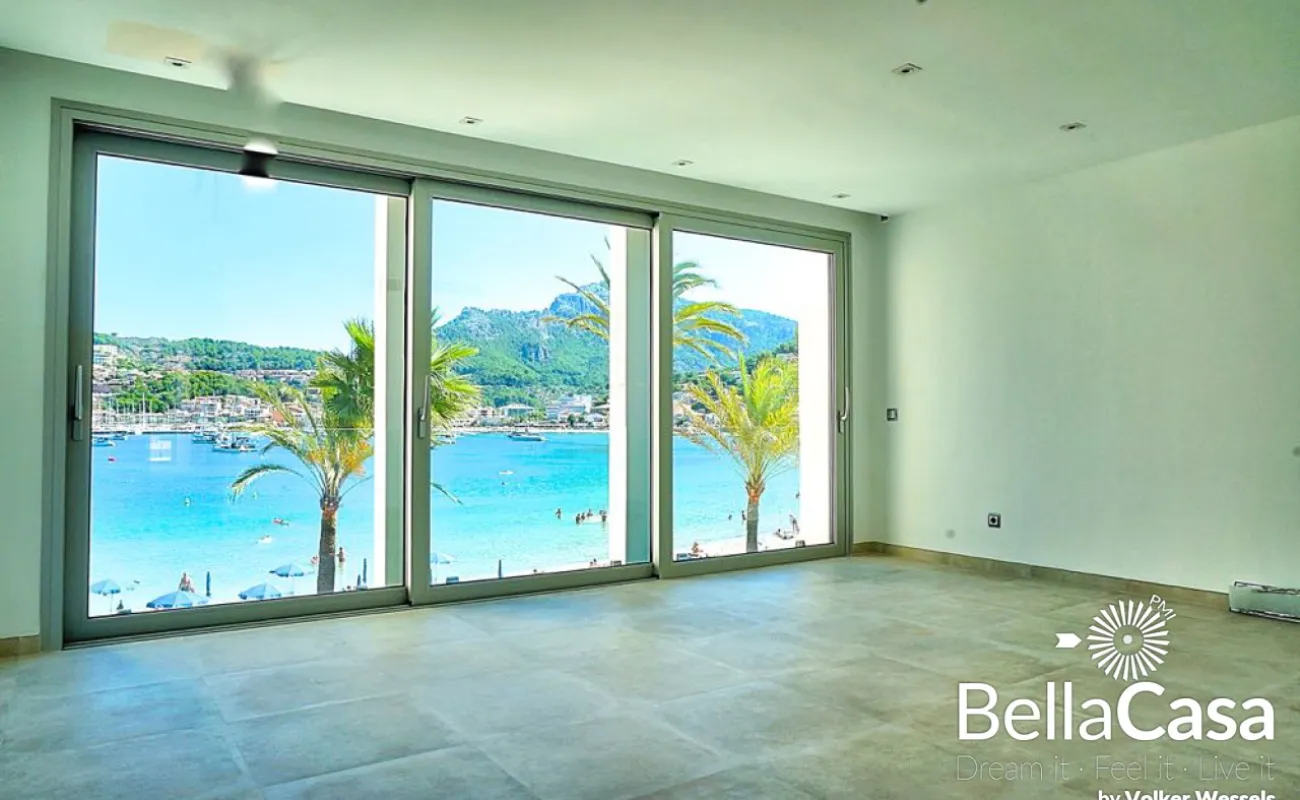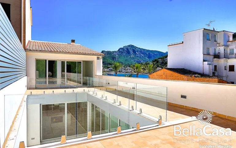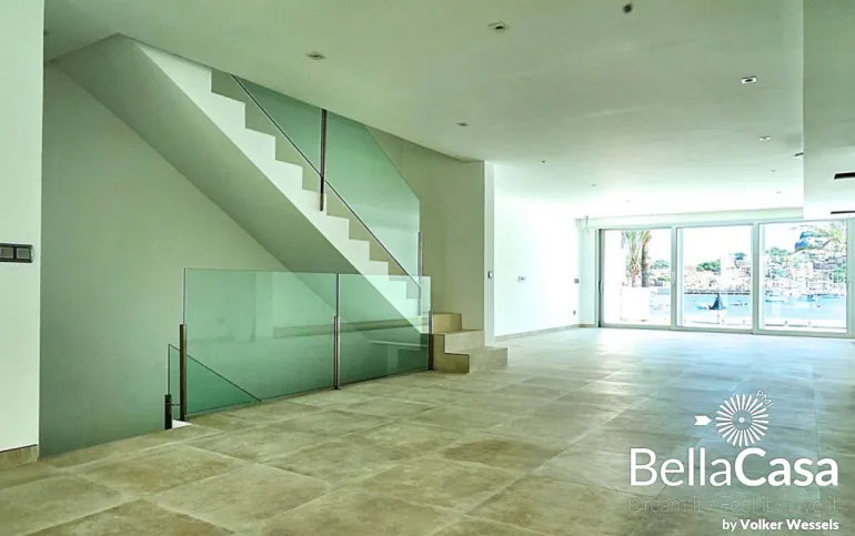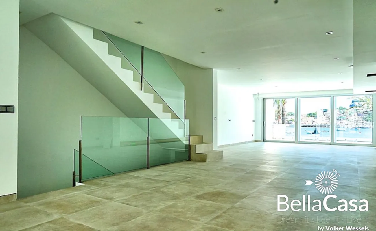 Auf 469 m2 Wohnfläche kombiniert diese imposante Villa natürliches Licht mit großzügigen Räumlichkeiten und der unmittelbaren Lage am Meer. Dieses Unikat beeindruckt durch seine einzigartige Lage in Puerto de Sóller und bietet Ihnen 3 Wohnebenen mit frontalem Meerblick auf die sich vor Ihnen erstreckende Bucht. Im EG befindet sich das Entrée, die Geschäftsräume mit Galerie und WC und eine Garage für 3 Pkw. Das OG bietet Ihnen eine Wohnlounge, Porcelanosa Küche, 2 Schlafzimmer, 2 Badezimmer (1 Ensuite) und die Terrasse Mediterraneo. Im 2.OG befinden sich 2 Suiten mit jeweiligen Bädern und eine 90 m2 Terrasse. Die intelligente und resourcenfreundliche Haustechnik mit Fußbodenheizung, KA, Warmwasseraufbereitung und Aufzug vereinfachen Ihnen das Genießen des Lebens. Verbinden Sie mediterranes Ambiente mit der natürlichen Schönheit der Serra de Tramuntana.