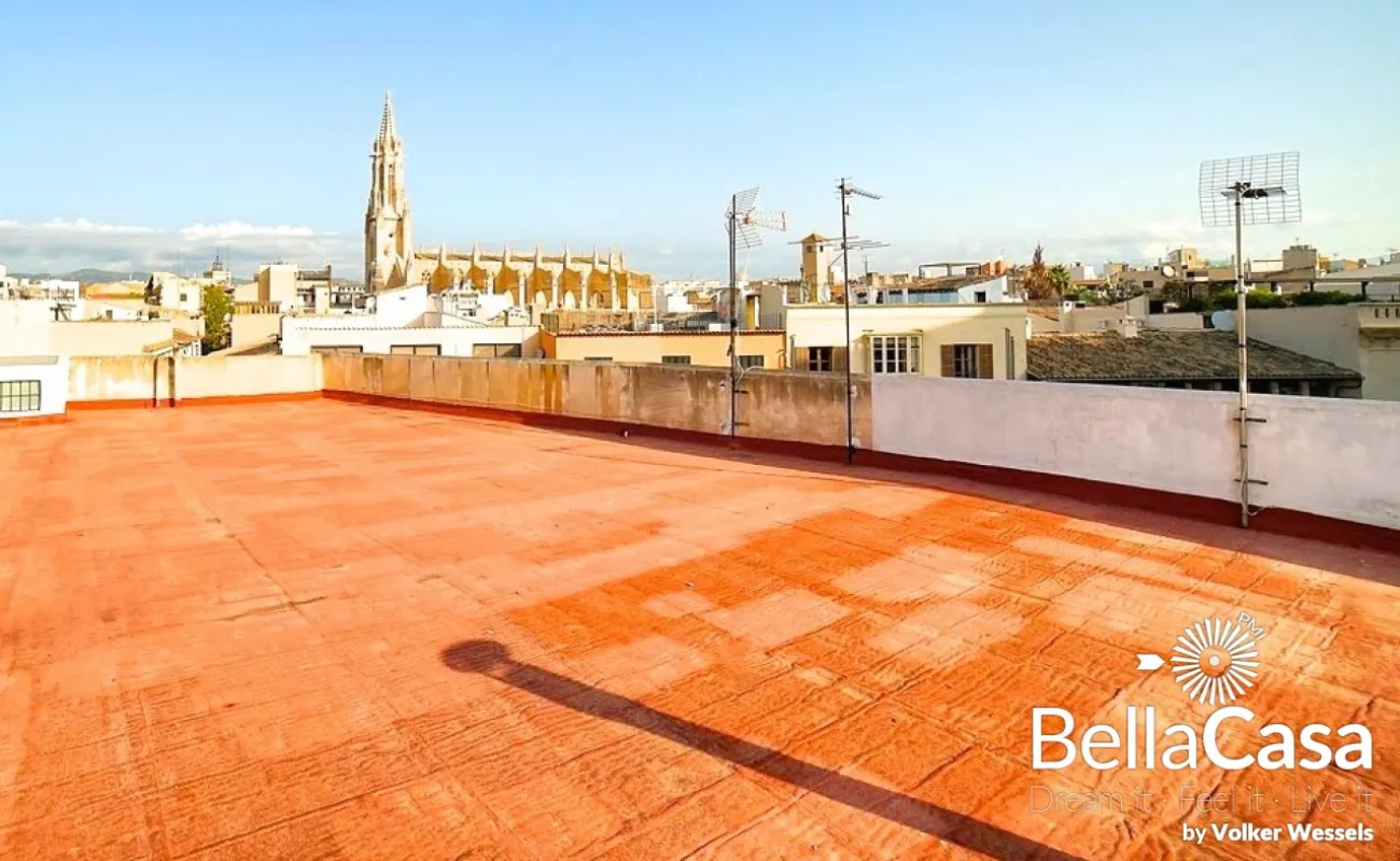 Dieses exquisite und komfortable Designer Penthouse liegt thronend über dem Plaza Sant Francesc - einer der bekanntesten Plätze der Inselmetropole mit einer Basilica nebst Kloster. Das komplett restaurierte Anwesen wurde mit erstklassigen Materialien ausgestattet und befindet sich im oberen dritten Stock des historischen Gebäudes. Eine grosszügige Panorama-Gemeinschaftsterrasse bietet Ihnen einen ambitionierten Blick über die Dächer Palmas mit seiner weltbekannten Kathedrale. Das Penthouse mit seiner ausgezeichneten Schall- und Wärmedämmung, bietet Ihnen 3 Schlafzimmer, Ankleidezimmer, 2 Bäder, Gäste-WC, Wohnzimmer, eine offen gestaltete Küche, Parkettböden aus Naturholz, eine zentrale KA und eine mit Heizkörpern ausgestattete Gasheizung.
