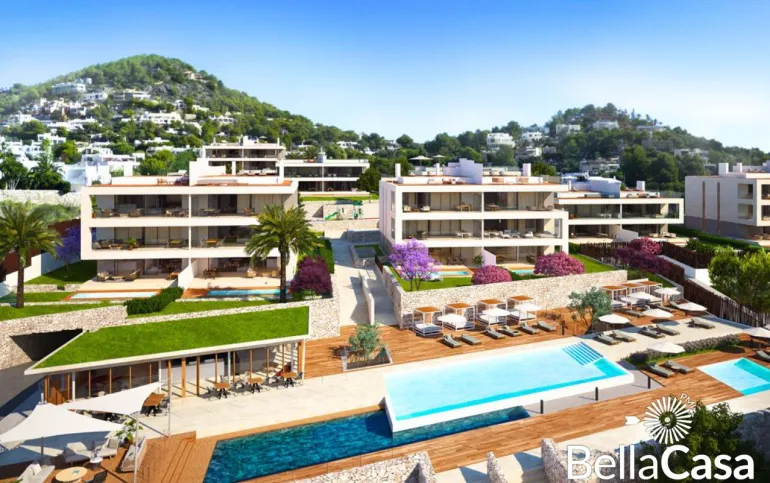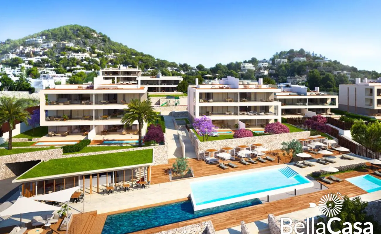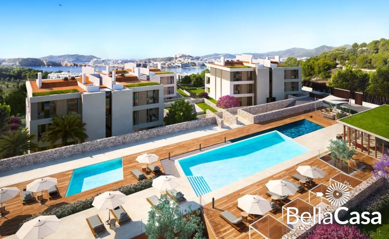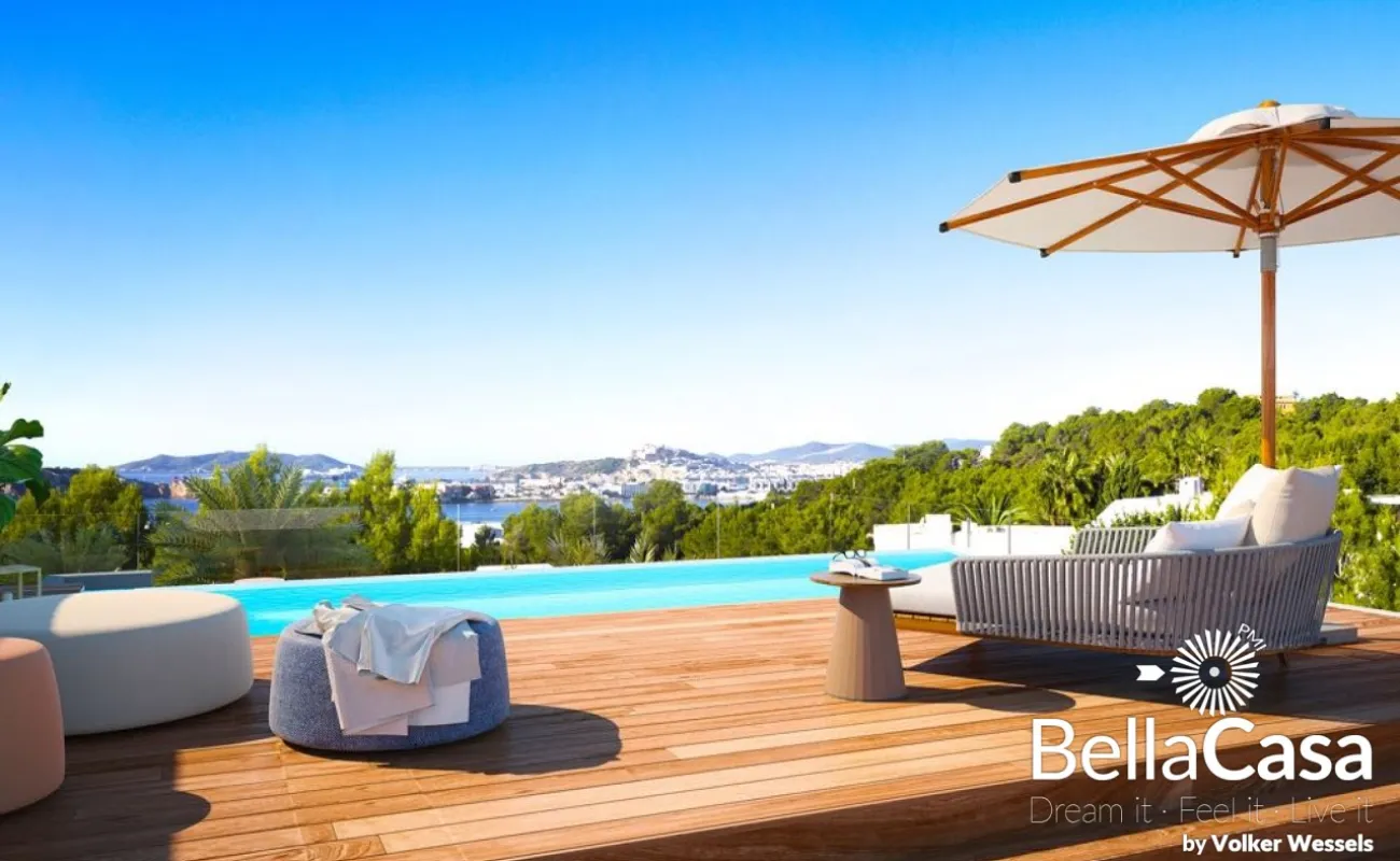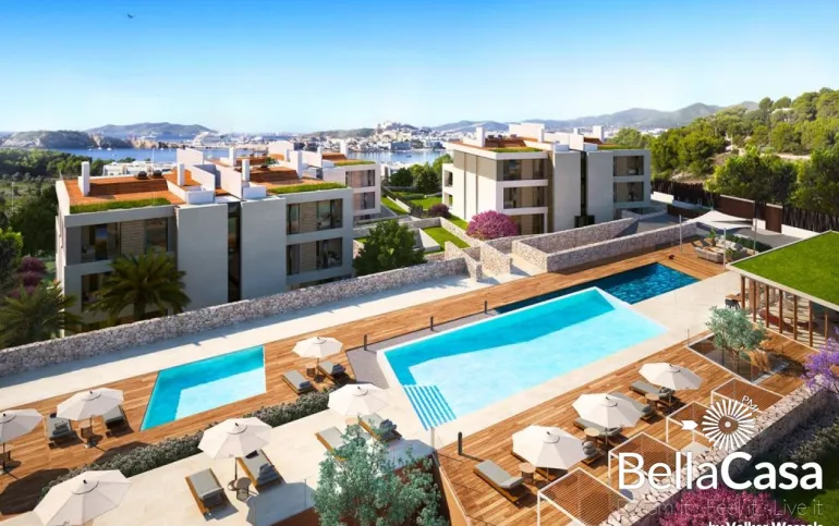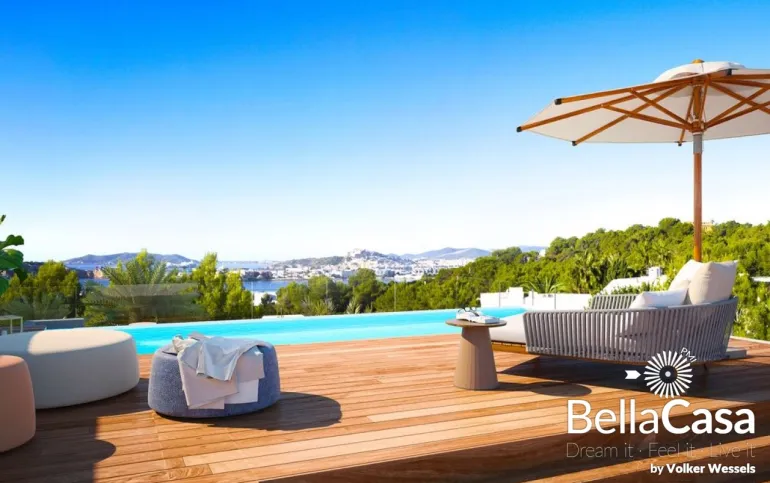 Die exquisiten, neu erbauten Apartments und Penthouses THE WHITE ANGEL im avantgardistisch-ibizenkischen Stil befinden sich in unmittelbarer Nähe des Hafens von Ibiza-Stadt und den Stränden Talamancas. Sie bieten Ihnen hohen Wohnkomfort in einer exklusiven Anlage mit jeweils 3 oder 4 Schlafzimmern nebst En Suite Bädern, privaten Pool, Wärmepumpe, Salon, Galerie, Garten mit 51 m2 Porche und einen atemberaubenden Blick auf das Mittelmeer und die historische Altstadt der Inselmetropole. Die private Anlage bietet Ihnen zwei Outdoorpools mit 140 und 104 m2, einen Indoorpool und ein Clubhaus mit Concierge, Spa, Fitness und Sauna.