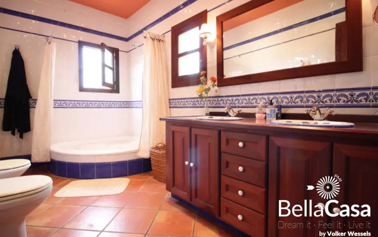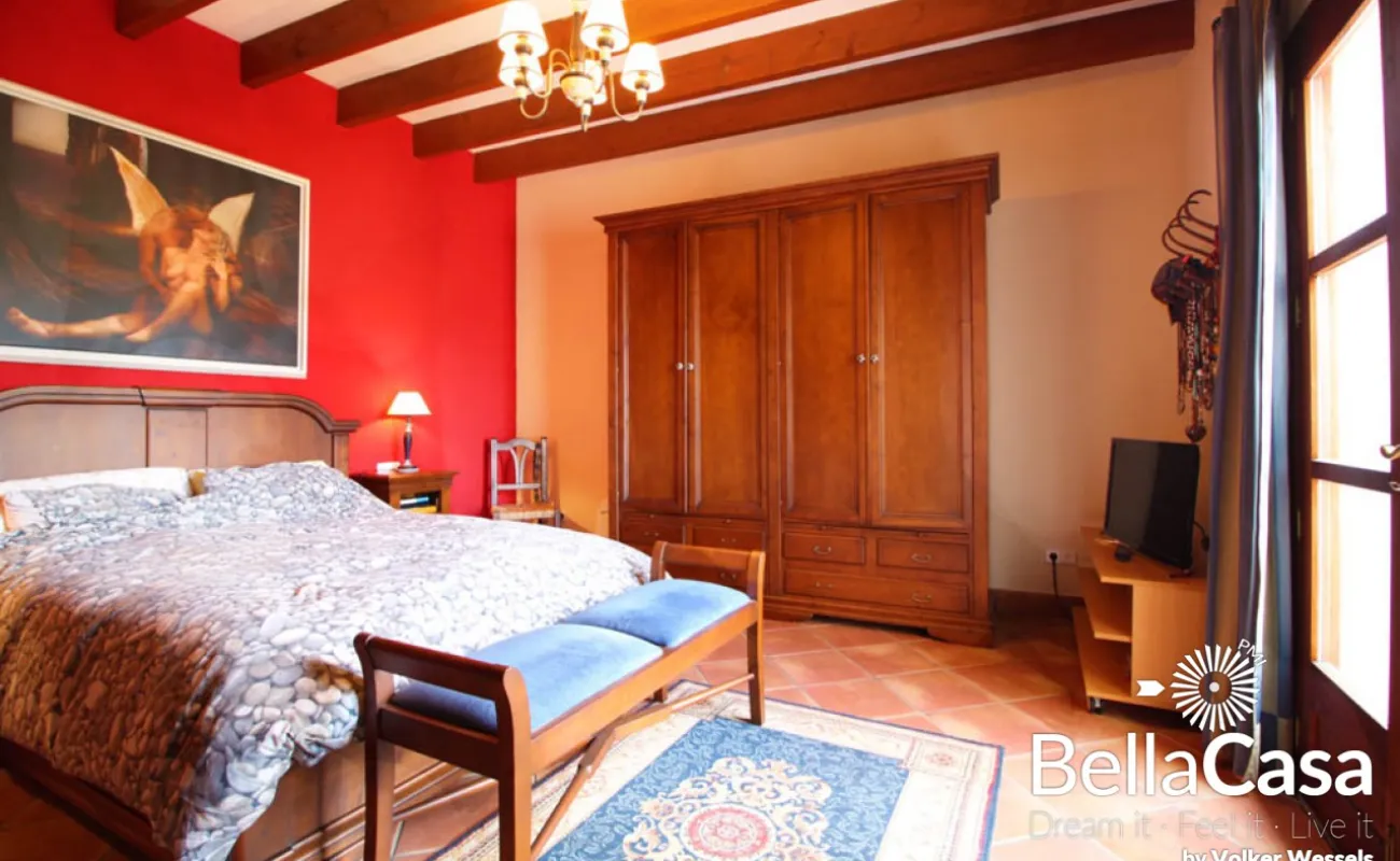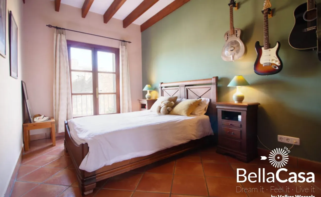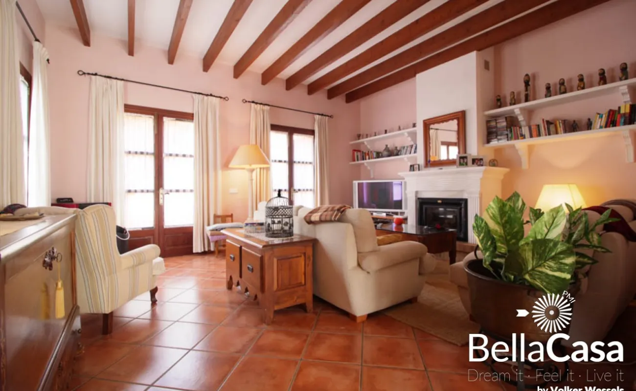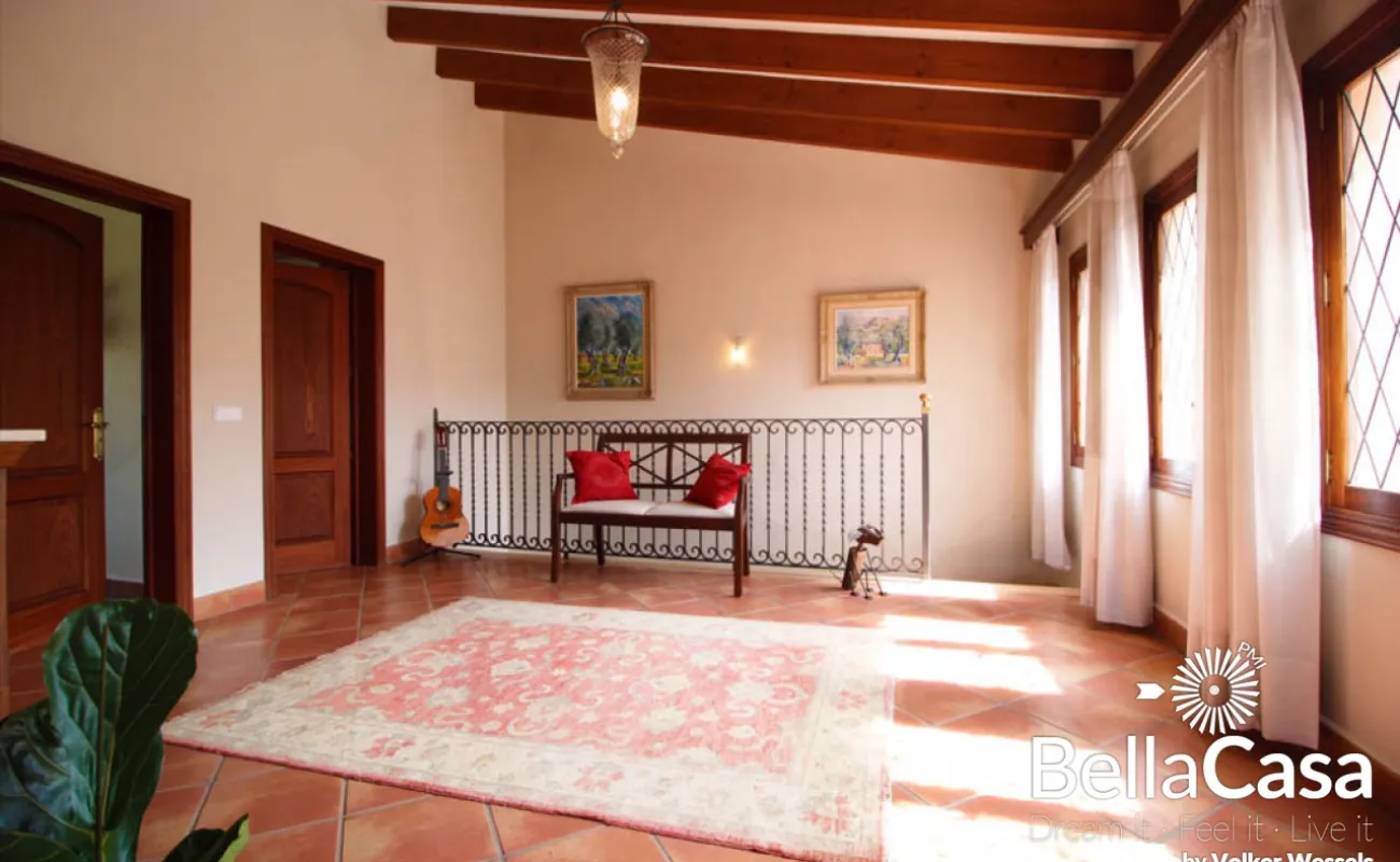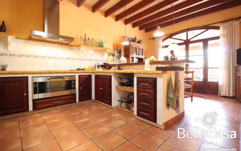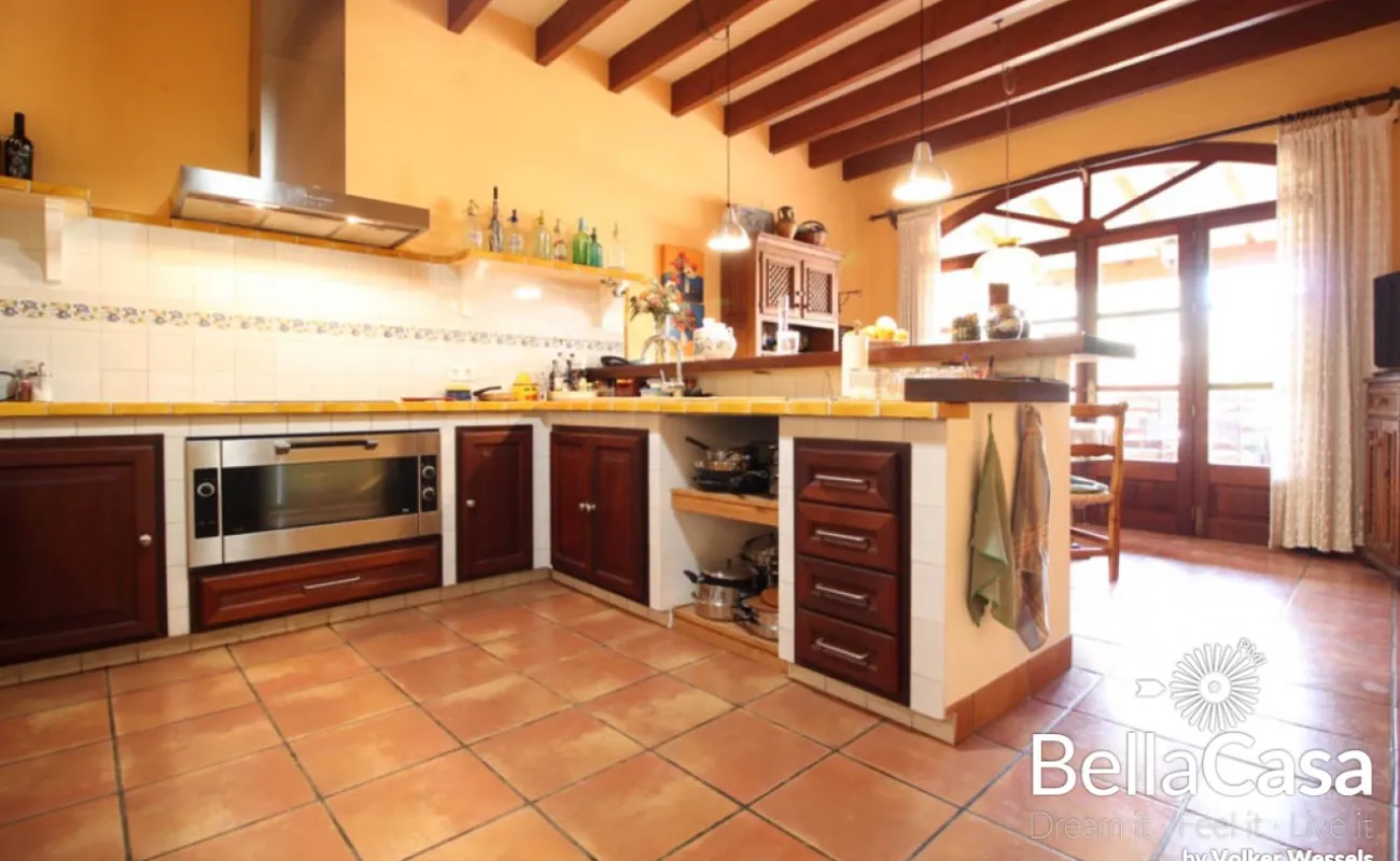 This luxurious and architecturally attractive town house exudes its charm from a mixture of manor house and finca style. It offers an idyllic tranquility not far from the center of Campos and has a spacious entrance, 5 bedrooms (one of which is in the guest wing, which can also be used as a large office), 2 bathrooms, toilet, large kitchen, living room, dining room, 50 m2 loft, underfloor heating throughout the house, fireplace, double garage, balcony, terrace and an imposing 230 m2 garden patio with its own well. The property is originally more than 200 years old and was refurbished to a high quality in 2000, using elements made of ceramic, Santanyi stone, teak and wrought iron. Enjoy maximum living comfort in the heart of the up-and-coming Mallorcan village of Campos, with its abundance of supermarkets and cozy restaurants and bars. You can reach the island metropolis of Palma with its International airport in 20 minutes and the well-known natural beach Es Trenc in just 10 minutes.