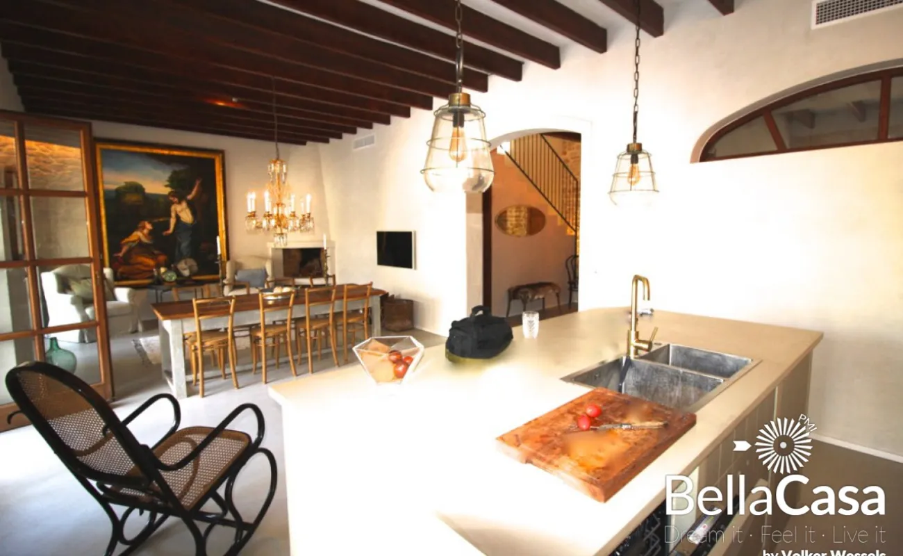 Этот роскошный и привлекательный с архитектурной точки зрения особняк был полностью отремонтирован в 2020 году и источает свое очарование в одном из лучших жилых районов Сантаньи. Этот таунхаус, оформленный в винтажном стиле, предлагает просторный вход, 4 спальни (при желании гараж может быть преобразован в другую спальню), 3 ванные комнаты, гардеробную, большую открытую кухню с кухонным островом, летнюю гостиную, тепловой насос / Altherma. центральное отопление, камин, система кондиционирования воздуха, гараж, подсобное помещение, техническое помещение, панорамная терраса на крыше и патио-терраса с барбекю и бассейном с соленой водой 5,80 х 2,50 м. Наслаждайтесь максимальным комфортом в самом сердце амбициозного города Сантаньи на Майорке с его множеством супермаркетов, баров и уютных ресторанов изысканной кухни. В непосредственной близости вы найдете деревни Сес-Салинес, Эс-Льомбардс, Колония-Сант-Жорди, рыбацкую деревню Кала-Фигера, бухты Кала-Сантаньи, Кала-Льомбардс, отмеченные наградами песчаные пляжи Кала-Мондраго и известные природный пляж Эс Тренк.