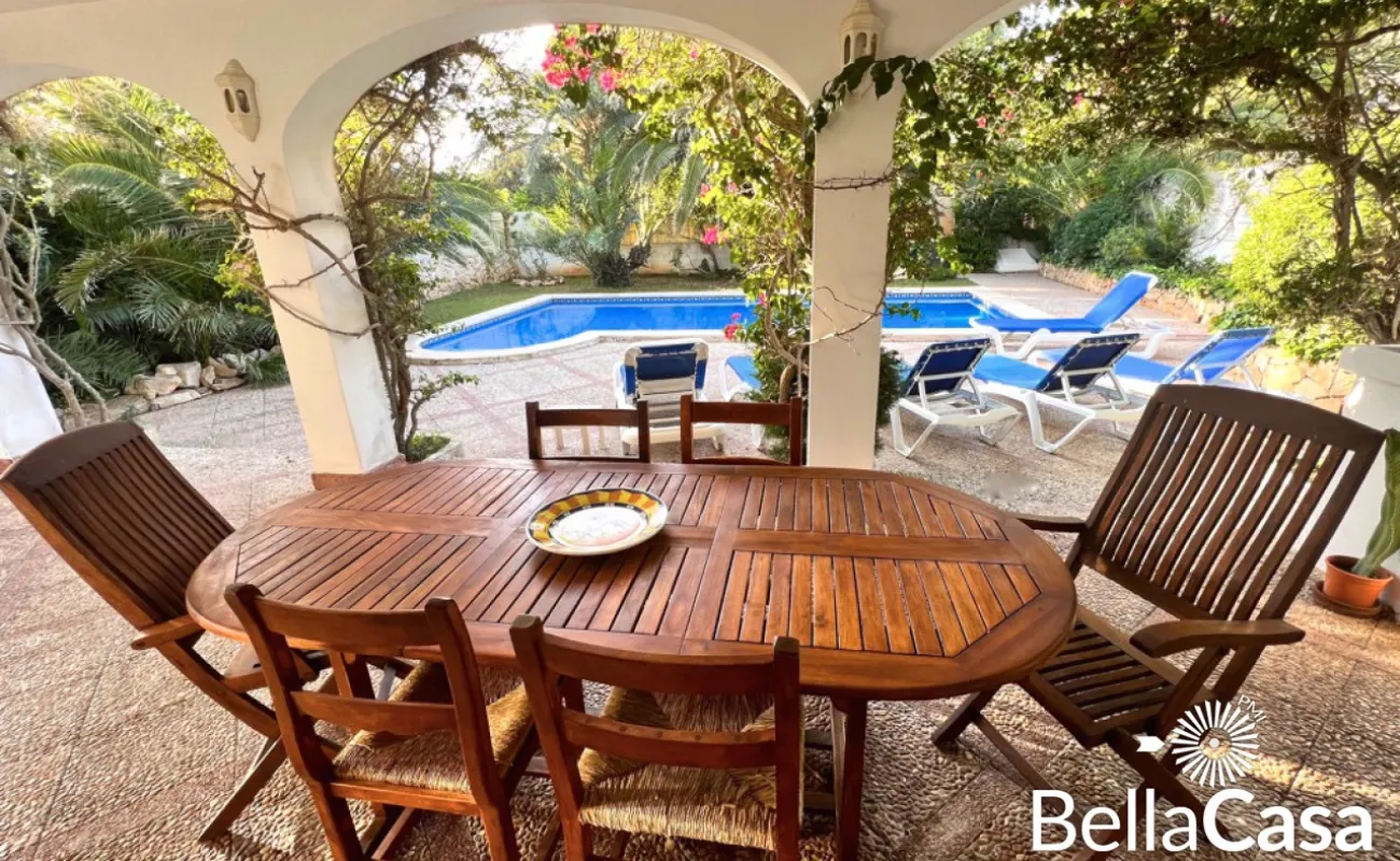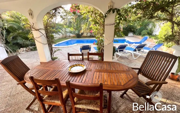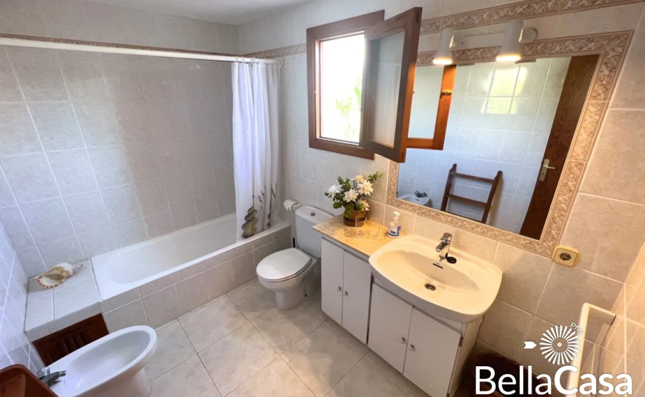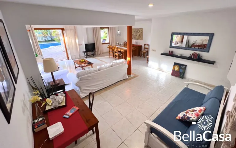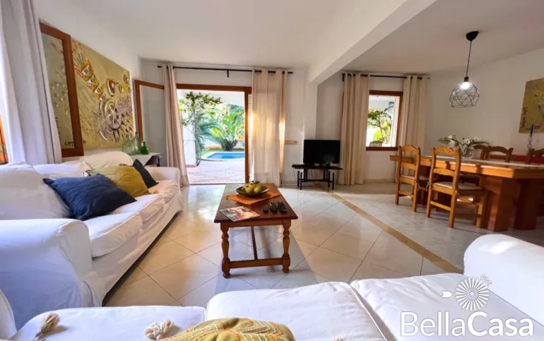 You find the Mediterranean summer villa only 300 m from the well-known Cala Egos and it offers an entrance, 3 bedrooms, 2 bathrooms, electric heating, air conditioning, fireplace, a 25,000 l cistern and a private 9 x 4.5 m pool with a covered BBQ zone and spacious terrace areas with a garden. You can swim at the neighboring wild and romantic Cala Egos, at Cala Esmeralda, Cala Serena, Cala Gran, Cala Ferrera, Cala d’es Forti, Cala Galera, or at the golden bay of Cala d´Or. In the vicinity you will find plenty of shops, bars and a wide variety of restaurants, the marina of Porto Petro and the Vall d´Or golf course. The property has a perpetual vacation rental license.