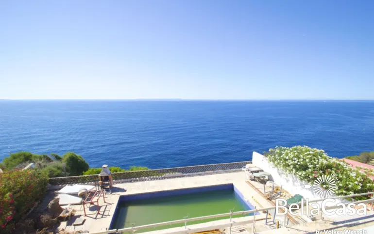 Diese 410 m2 Neubau Villa in Südlage besticht durch ihren 180° Meerblick und ihren lichtvollen Charakter mit Infinity Pool in 1. Meereslinie. Gestalten Sie dieses reizvolle Unikat in der Endbauphase selbst mit und geniessen Sie in nur sechs Monaten Wohnkultur mit mediterranem Ambiente pur. Das mit langgezogenen Glasfronten konzipierte Neubauprojekt umfasst 5 Schlafzimmer, alle mit Bad en suite, eine grosse offene Wohnlounge, Sauna, Garage, Fussbodenheizung, Solaranlage und einen 10 x 4 m Infinity Pool. Lassen Sie Ihren Blick bei einem guten Glas Wein vom eigenen Überlaufpool über das Mittelmeer, bis hin zur Nachbarinsel Cabrera wandern und geniessen die atemberaubende Brise des Mittelmeeres.